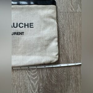 Saint Laurent clutch, YSL pouch, Rive Gauche bag, designer wristlet, canvas YSL, luxury clutch, minimalist designer bag, Parisian style, Saint Laurent beige pouch, authentic YSL