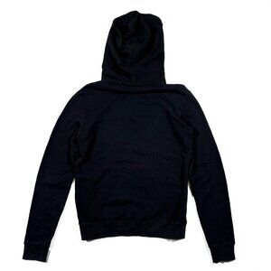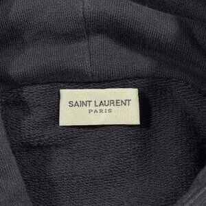 Classic Saint Laurent hoodie in black. Slim tailored fit; comfortably fits size small and medium. Gently worn, with discoloration at drawstrings and sleeve lines.