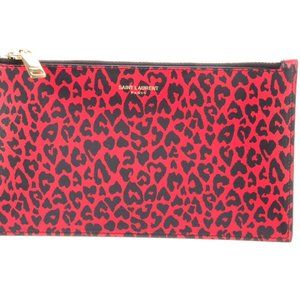 Saint Laurent Rouge Leopard Printed Calfskin Leather Medium Pouch