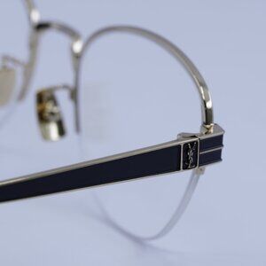 Authentic Saint Laurent SL M64 005 eyeglasses in gold with black temples.