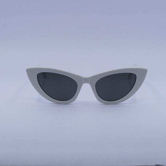 Saint Laurent SL213 LILY 017 Sunglasses White Cat Eye Frame, Grey Lenses