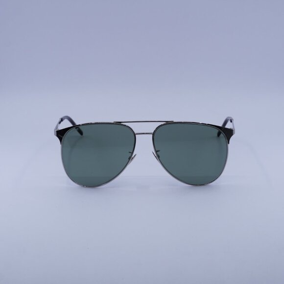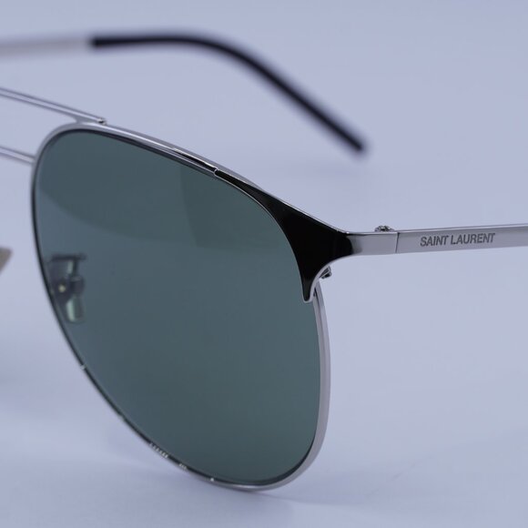Saint Laurent SL279 004 Sunglasses Silver Aviator Frame, Green Lenses