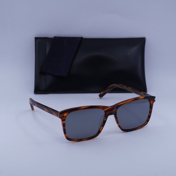 Saint Laurent SL339 004 Rectangle Sunglasses - Havana/Silver