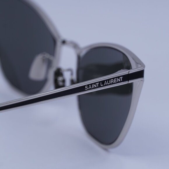 Saint Laurent SL409 001 Sunglasses Silver Cat Eye Frame, Grey Lenses