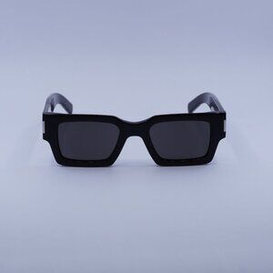 Saint Laurent SL572 001 Sunglasses Black with Silver Square Frame, Grey Lenses