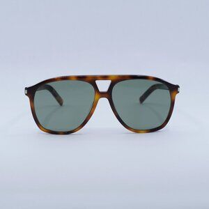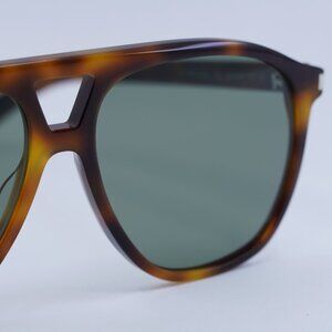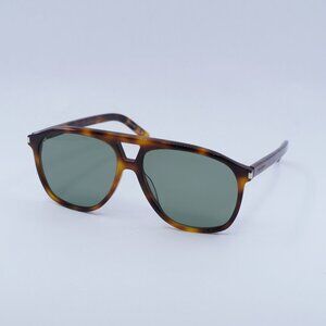 Saint Laurent SL596 DUNE 002 Sunglasses Havana Aviator Frame, Green Lenses