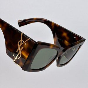 Saint Laurent SLM119 BLAZE 002 BRAND NEW Sunglasses Havana Green Oversized Cat Eye Women