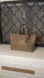 Chic Saint Laurent tote in smooth taupe leather. Features dual handles, signature logo charm, and pouch. Excellent preloved condition. Comes with dust bag.