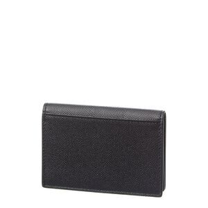 About the brand: Iconic, modern glam. Tres chic! Made in Italy Signature Leather Card Case in black leather and gold-tone hardware with monogram accent Interior design details: leather interior Measures 4.3in wide x 3in high x 1in deep Fold-over flap with snap closure Please note: All measurements were taken by hand and are approximate; slight variations may occur. Our products are 100% genuine. In some cases we purchase merchandise from trusted independent suppliers and not directly from the brand owner. In all cases we stand by the authenticity of every product sold on our site.