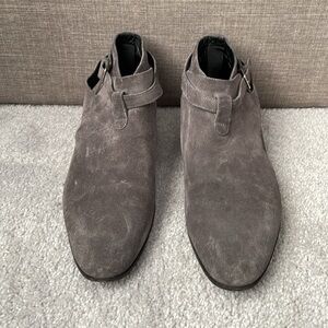 Saint Laurent Signature London 20 Jodhpur cropped boot. Size 40.5 (US 7.5). Color - dark anthracite suede. Adjustable ankle strap with pull tab. 100% calfskin. Leather sole. In worn pre-owned condition. Make an offer!!