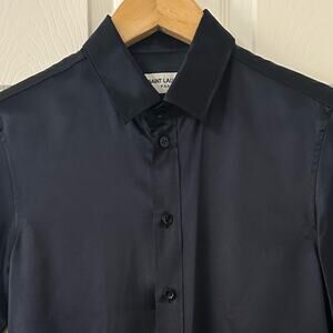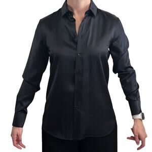 Saint Laurent Silk Satin Blouse Glossy Black size FR 38 Button front