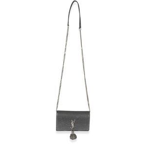 Saint Laurent Silver Embossed Kate Tassel Chain Wallet