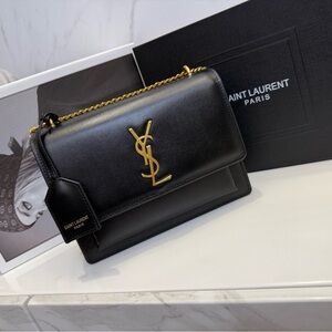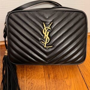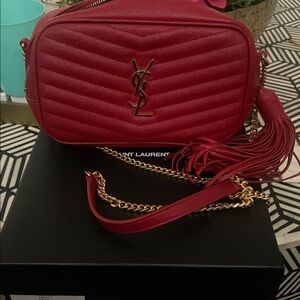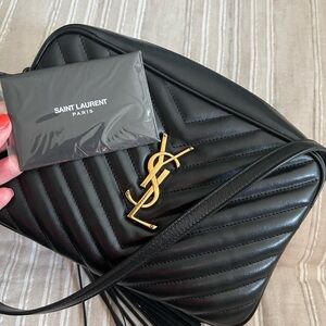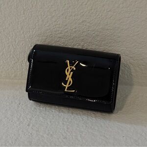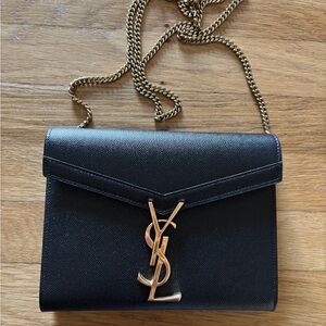 Saint Laurent silver metallic monogram crossbody shoulder bag. Gold chain and gold YSL emblem are beautiful. New with dustbags and authenticity card.