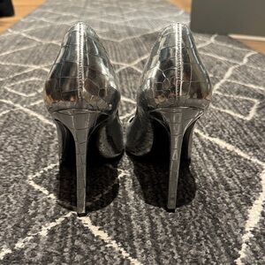 Chic YSL Saint Laurent heels in metallic silver. Croc-embossed design. Perfect for elegant occasions. Lightly worn. Size 38.