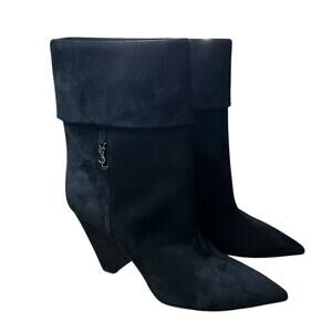 Saint Laurent Silver Monogram Niki Booties In Black Suede EU 38.5 US 8.5