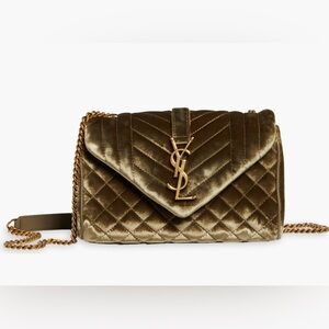 Saint Laurent Small Envelope Velour Crossbody Bag NWT YSL Pale Olive