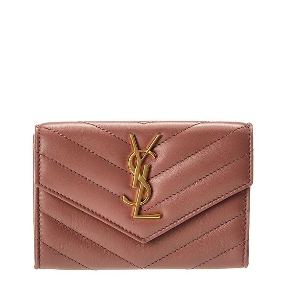 Saint Laurent Small Matelasse Leather Envelope Wallet, Pink