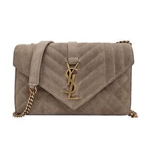 Saint Laurent Small Suede Tri-Quilt Envelope Flap Crossbody Bag Tan