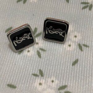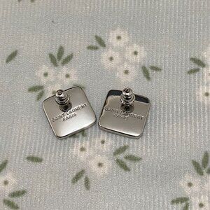 Saint Laurent Square Silver Metal Frame With A Black Background, Classic Ysl Ear