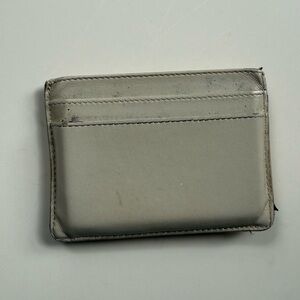 This is an authentic SAINT LAURENT Calfskin Star Print Card Case in White. This petite wallet is crafted of grained leather in white with gold stars. The case features a prominent gold YSL logo, has several credit card slots, and opens to a black interior.