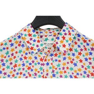 Saint Laurent Star Print Button Down Shirt Top Size F42 Silk Multi Color