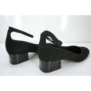 SAINT LAURENT SUEDE BABIES ANKLE STRAP BLOCK HEEL PUMP SZ 36 NIB YSL LOGO $795