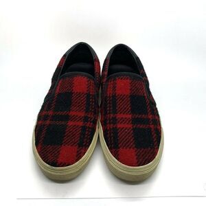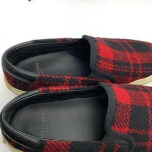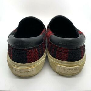 Saint Laurent Sz 39 Red & Black Tartan Plaid Tweed Slip-On Sneakers