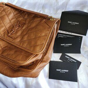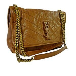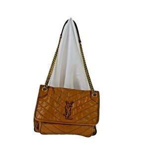 Pre-Loved Saint Laurent Tan Niki Medium Quilted Crinkle-Leather Shoulder Bag