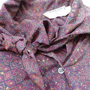 Saint Laurent Top Size 40 Silk Puff Blouse Bow Tie Button Small Vtg Rive Gauche
