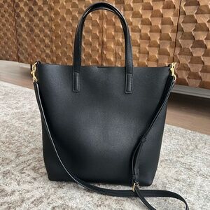 TOY SHOPPING SAINT LAURENT NORTH/SOUTH BAG FEATURING CASSANDRE CHARM. ADDITIONAL SHOULDER STRAP OFFERS MULTIPLE CARRYING OPTIONS.