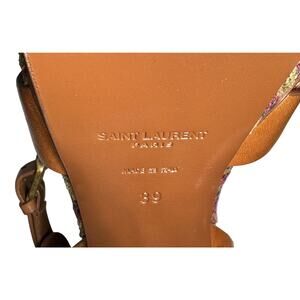 Saint Laurent Tribute 105 Calfskin Tapestry Marrakech Platform Sandals 39 Ambra