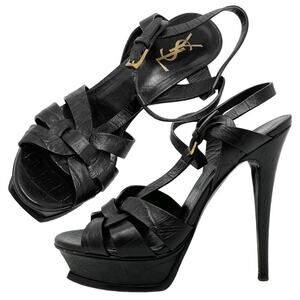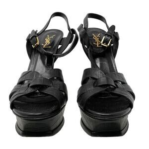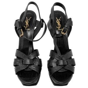Saint Laurent Tribute 120 Black Embossed Leather Platform Sandals Size 40.5