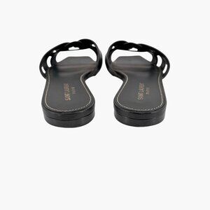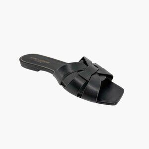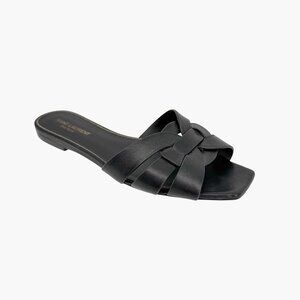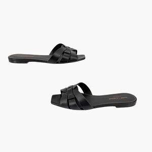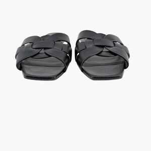 Saint Laurent Tribute Black Braided Leather Flat Slide Sandals Size 38.5 US 8.5
