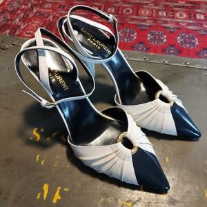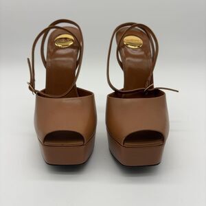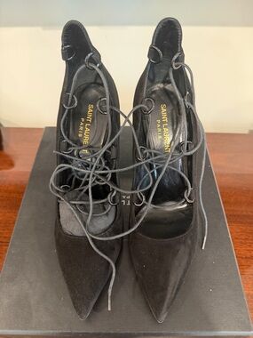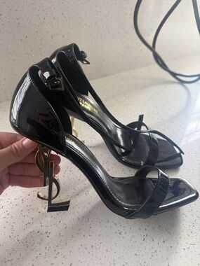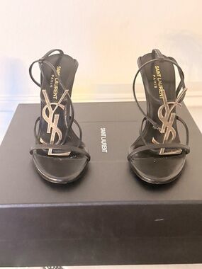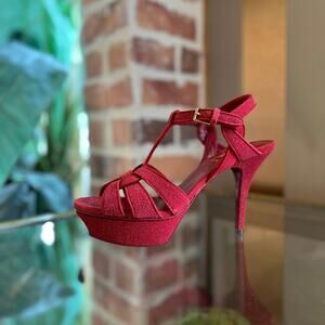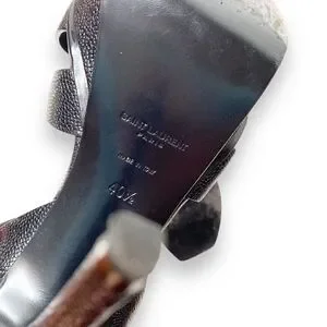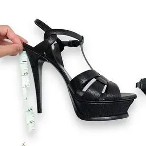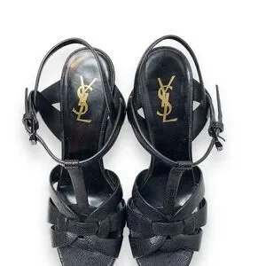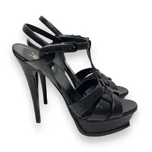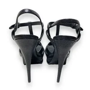 YSL Saint Laurent Tribute Black Grained Leather Platform High Heel Sandals Size 40.5