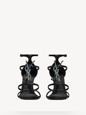 Saint Laurent Tribute Black Grained Leather Platform High Heel Sandals Size 40.5