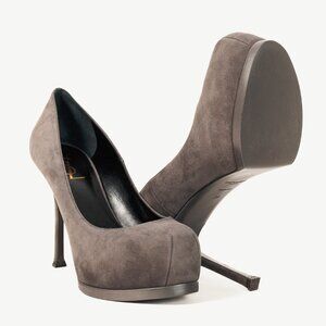 Saint Laurent Tribute Earth Grey Suede Platform Pumps