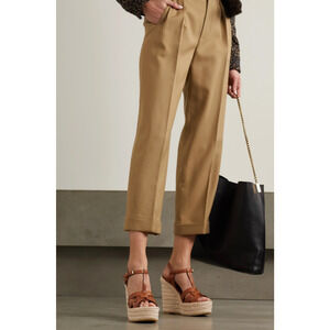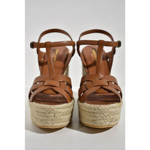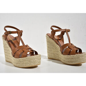 Saint Laurent Tribute Espadrille 85 Brown Ankle Strap Platform Wedge Sandal 40.5
