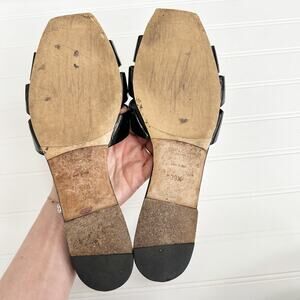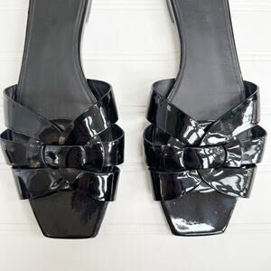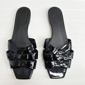 Saint Laurent Tribute Flat Sandals Black Patent Leather Woven Slide 39.5
