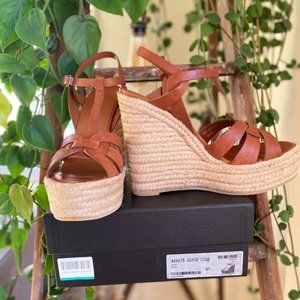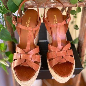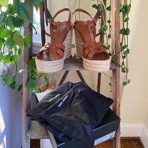 Saint Laurent Tribute Leather Espadrille Wedge Sandals
