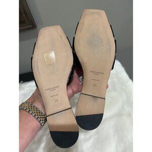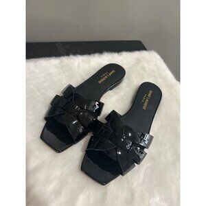 Saint Laurent Tribute Mule Patent Leather Slide Sandals Black Womens Size 36 6