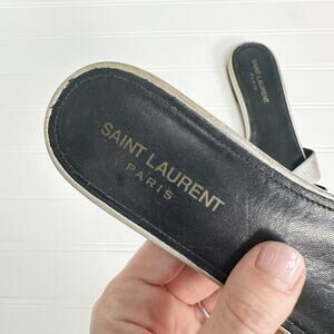 Saint Laurent Tribute Silver Metallic Leather Flat Sandals Slip-On Slides 40.5