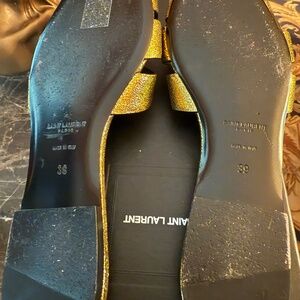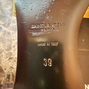 Saint Laurent Tribute slides, 39 in crackled gold leather. Pre-owned in excellent condition.