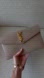 This Saint Laurent clutch in a sophisticated tan hue features a sleek envelope-style design with the iconic gold YSL logo on the front. Crafted from high-quality leather, it exudes elegance and luxury, making it a perfect accessory for any refined occasion. In very good condition. The logo in the front has some scratches but not very noticeable