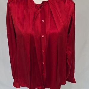 Vintage Saint Laurent chic red blouse with a stylish tie-neck design. Perfect for a sophisticated look.