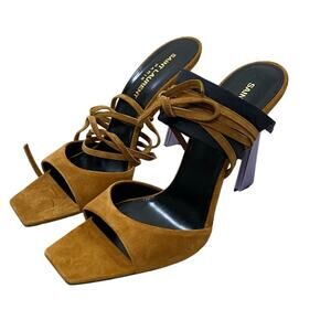 Saint Laurent Vitti Heel Sandals Wrap Suede Square Toe Sexy Party Formal Sz 7