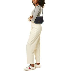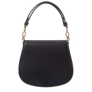 About the brand: Iconic, modern glam. Tres chic! Made in Italy Voltaire Top Handle Leather Satchel in black leather and gold-tone hardware with monogram accent Interior design details: suede interior Measures 8.3in wide x 6.9in high x 3in deep Adjustable and removable shoulder strap drops 9in Fold-over flap with magnetic closure Please note: All measurements were taken by hand and are approximate; slight variations may occur. Our products are 100% genuine. In some cases we purchase merchandise from trusted independent suppliers and not directly from the brand owner. In all cases we stand by the authenticity of every product sold on our site.