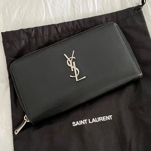 Authentic Preloved Saint Laurent Zip Around Wallet/Clutch. This versatile piece holds so much. It can be used as a large Wallet or small clutch. There are 2 listings for this. Please see both listings because the photos are the best description.