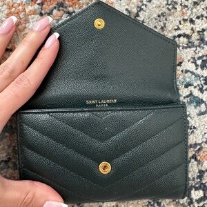 Saint Laurent Cassandre Matellase envelope wallet in a beautiful dark green! Lightly used.