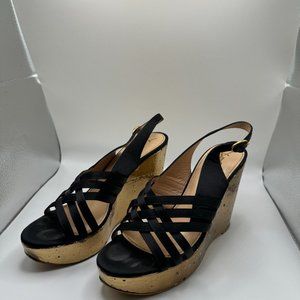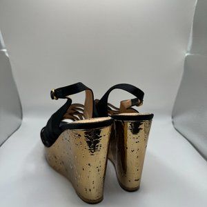 Saint Laurent Wedge Heel Sandals in Black Satin with Golden cork heel size 38