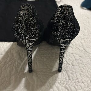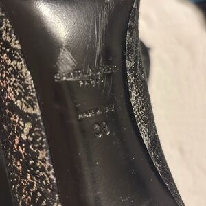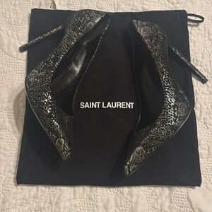 Saint Laurent Women's Black Suede metallic snakeskin Pumps silver size 39 YSL